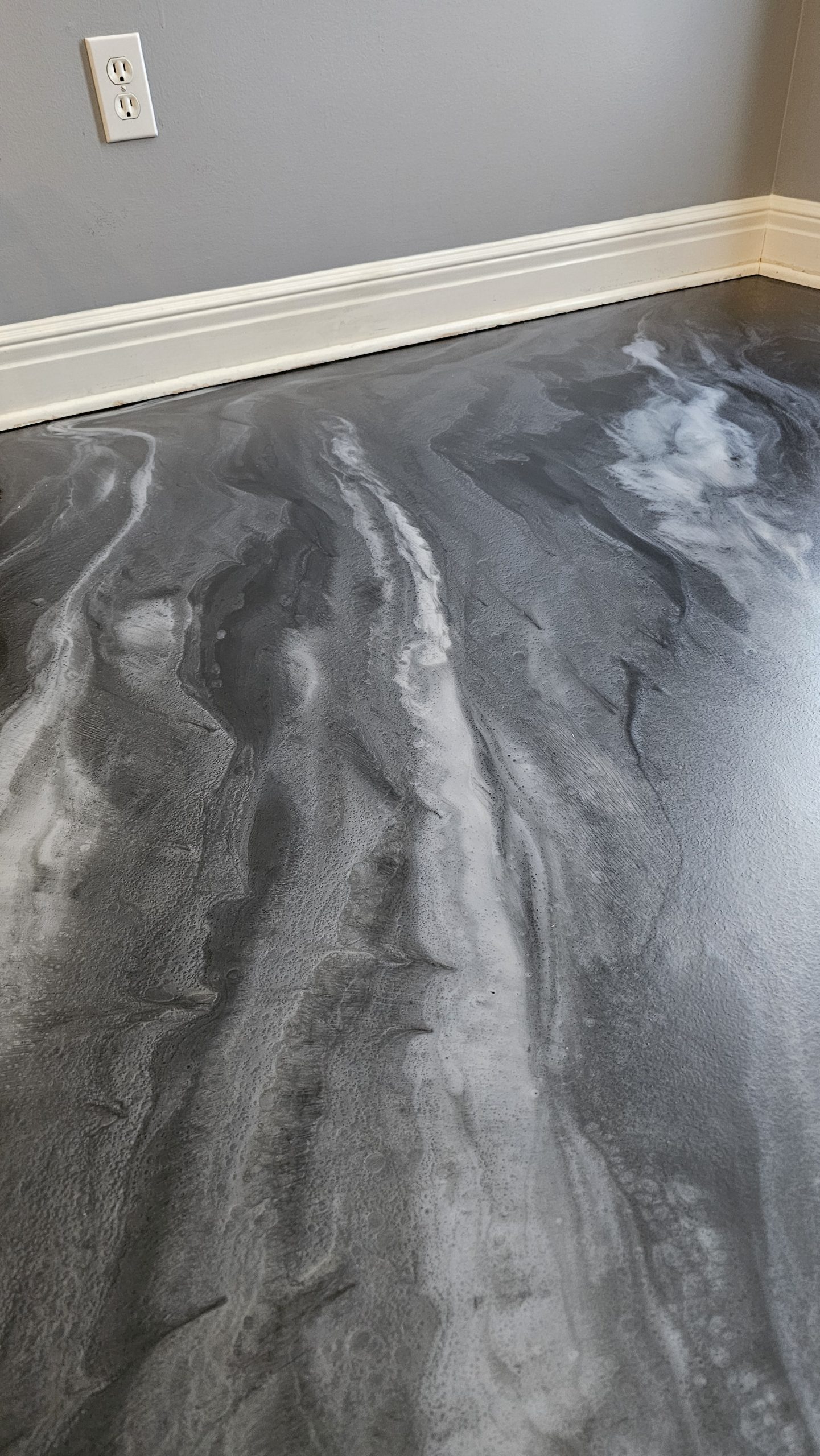 Unleash artistic brilliance with our mesmerizing Metallic Epoxy floors. These unique, custom concrete finishes create a stunning, multi-dimensional appearance, making them ideal for retail spaces, showrooms, or any area where a luxurious and eye-catching floor is desired. Discover the beauty of custom concrete floors Cleveland MO.